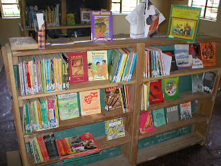 Using available resources towards a well-functioning and well-used libraries: cloth wire hanger as a book display stand, old desk & chalkboard for library shelves, etc.
